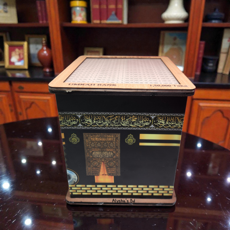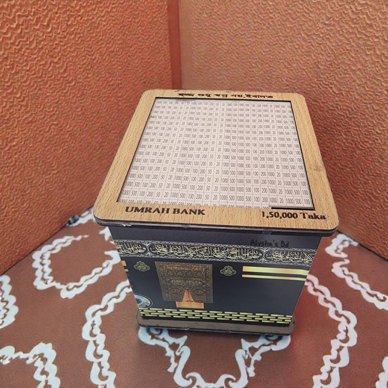 Umrah Savings Bank হলো কাবা শরীফের আদলে তৈরি একটি প্রিমিয়াম সেভিংস বক্স, যা মুসলিমদের উমরাহর জন্য লক্ষ্য নির্ধারিতভাবে সঞ্চয় করতে উৎসাহিত করে। এর উচ্চমানের ডিজাইন, সুন্দর ইসলামিক ক্যালিগ্রাফি এবং কাবা দরজার নিখুঁত ডিটেইলিং আপনার ঘরে এনে দেয় আধ্যাত্মিক অনুভূতি।